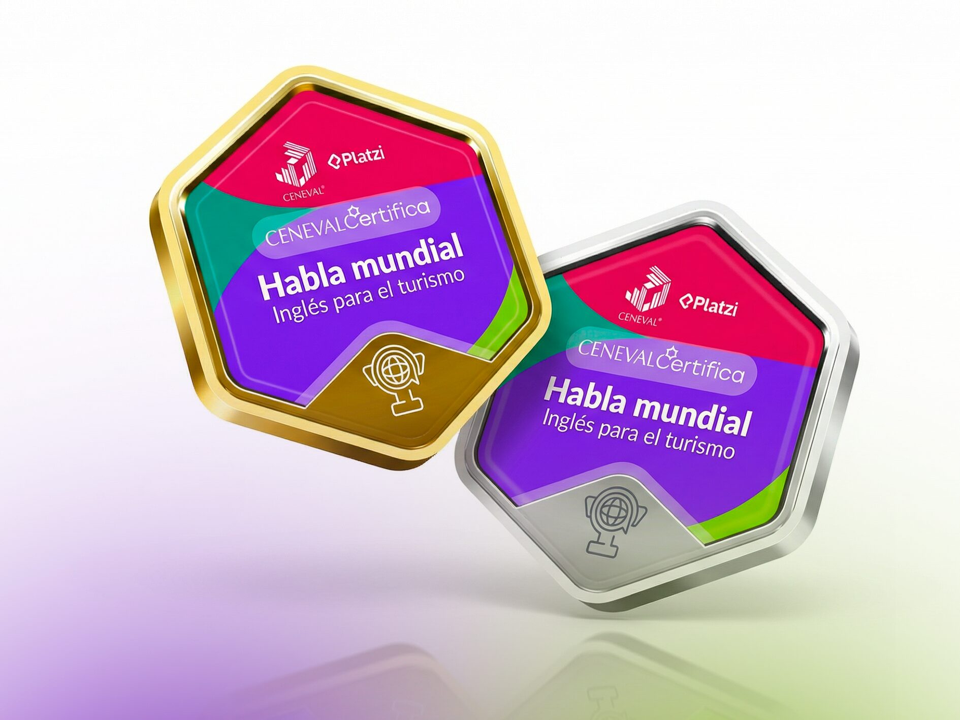 Habla Mundial es una microcredencial desarrollada por Platzi y el Centro Nacional de Evaluación para la Educación Superior (CENEVAL) que certifica la capacidad de comunicación oral en inglés en contextos turísticos.